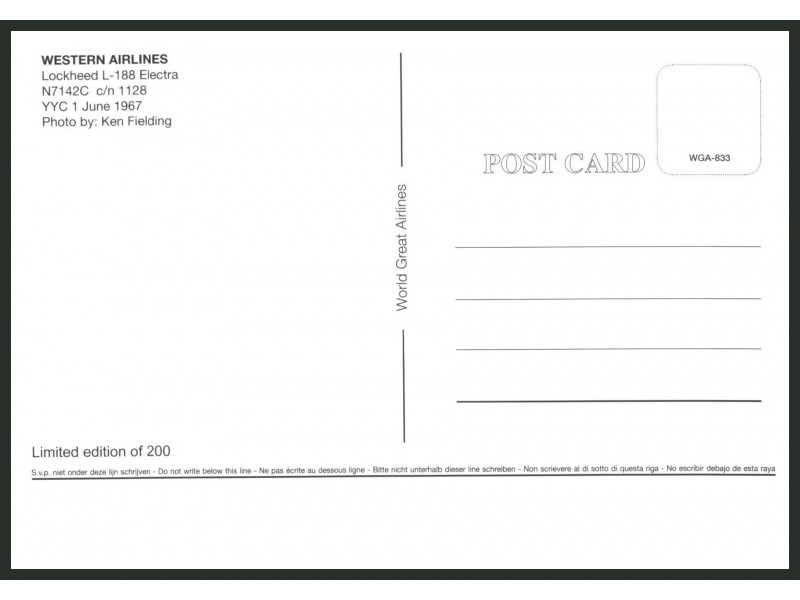 World Great Airlines WGA-1033; 5.8''x4.1'' (148x105 mm); new