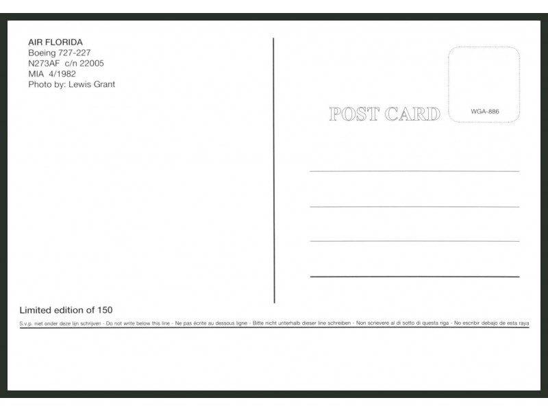 World Great Airlines WGA-1696; 5.9''x4.1'' (150x105 mm); new