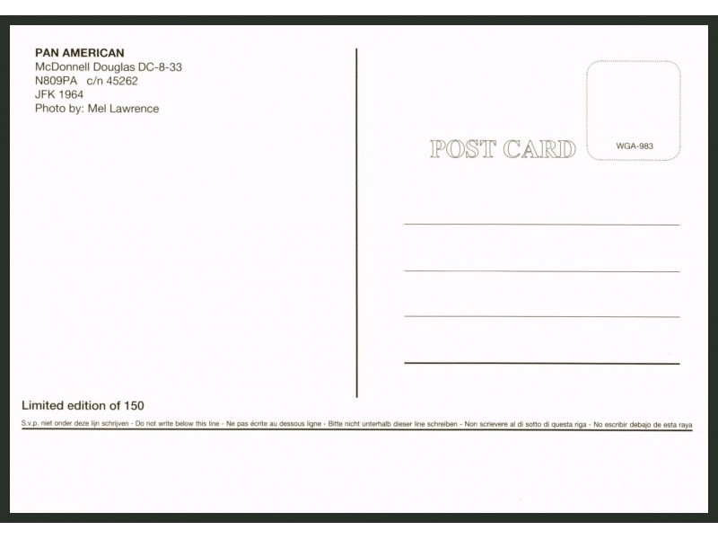 World Great Airlines WGA-1001; 5.8''x4.1'' (148x104 mm); new