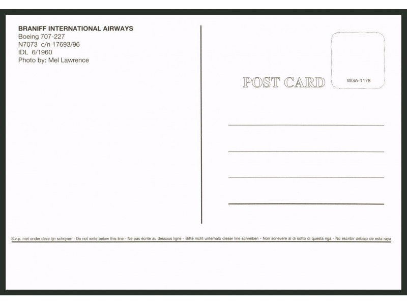 World Great Airlines WGA-091; 5.8''x4.1'' (148x105); new
