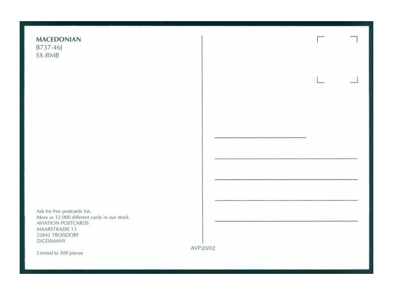 Airline Issue; 5.8''x4.1'' (148x105 mm); condition mint
