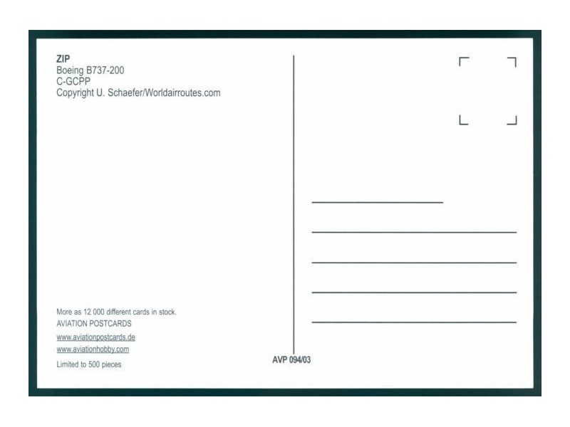 Wingtip Postcards W66; 5.4''x4.2'' (138x107); new