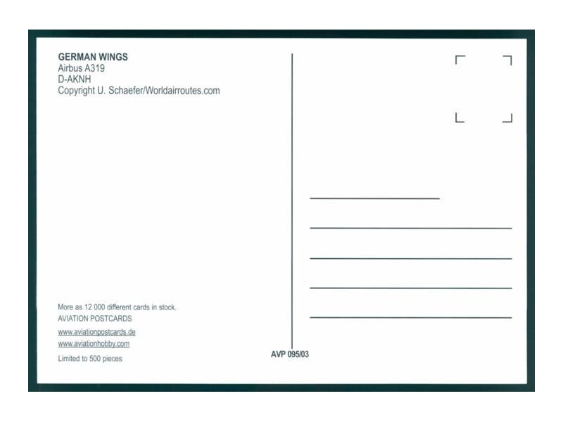 World Great Airlines WGA-387; 5.9''x4.1'' (150x105); new