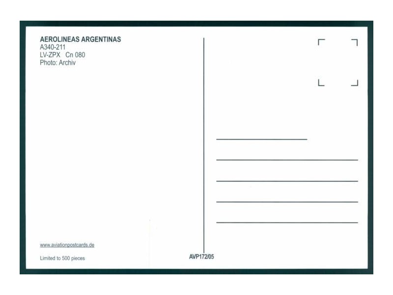 World Great Airlines WGA-016; 5.8''x4.1'' (148x105); new