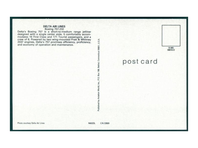 Airline Issue; 5.9''x4.1'' (149x105 mm); mint